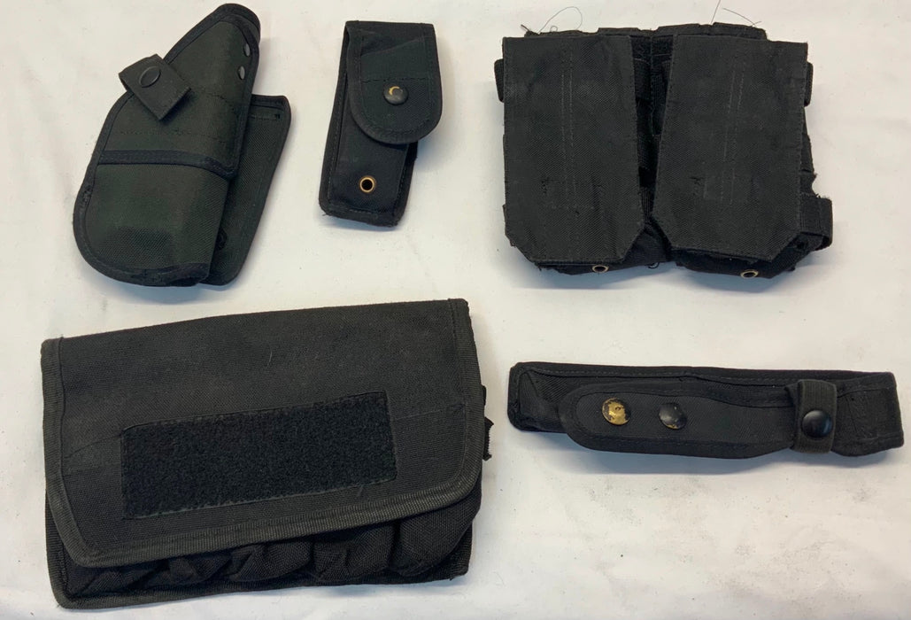 Black Nylon Molle Vest Pouch Kit With 5 Pouches Ammo Baton Taser Set 4 Grade B
