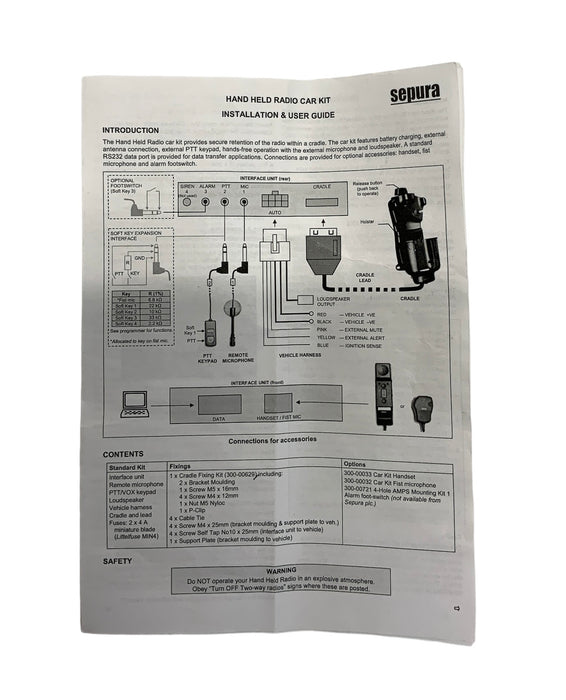 Sepura 2000/3000 Car Kit, Hand Held Radio Kit 300-00031 CARKIT01